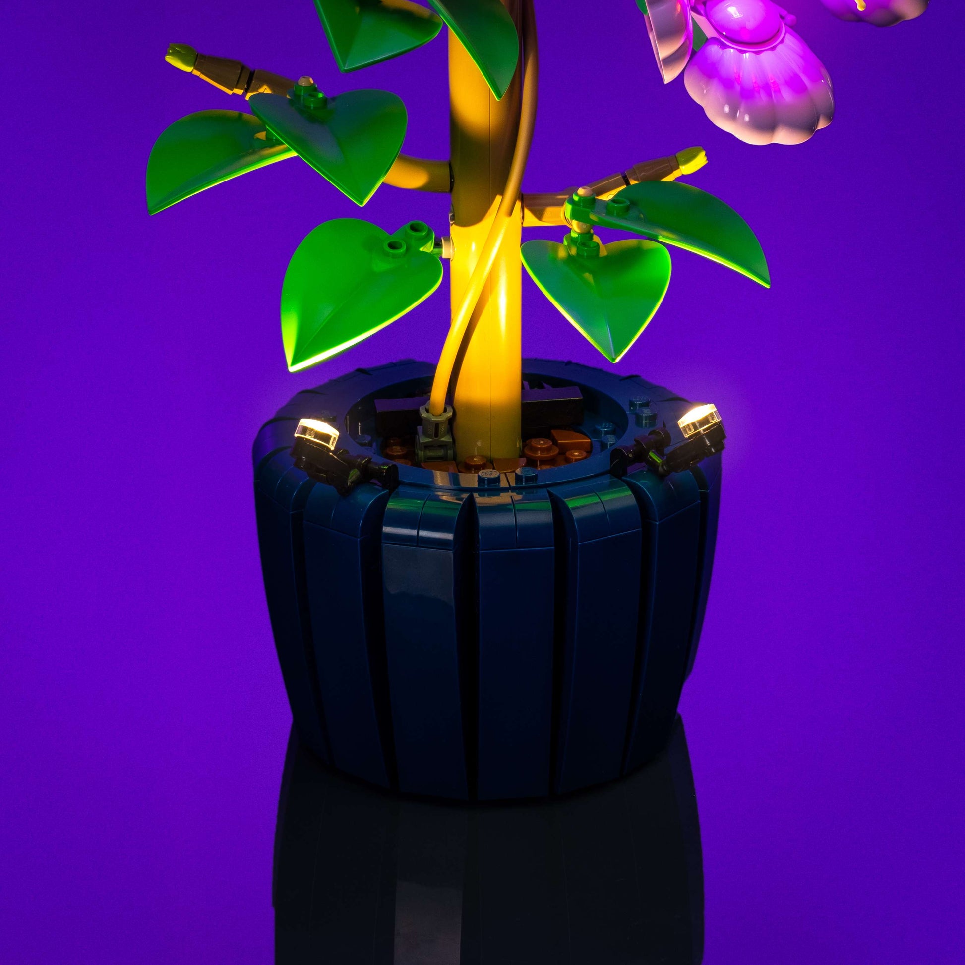 Add a splash of colour to your home décor with a custom Light My Bricks™ Light Kit for the LEGO® Icons Hibiscus, designed to make this vibrant botanical bloom even more captivating. Two warm white spotlights mounted on the pot create a soft, inviting glow, while five vivid violet LEDs bathe the petals in a rich purple light, bringing the flowers to life with elegance and charm. Perfect as a statement piece on its own, this illuminated hibiscus also beautifully complements the rest of the LEGO® Botanical Collection—especially our matching Light Kit for the LEGO® Icons Orchid—creating a cohesive and eye-catching display.