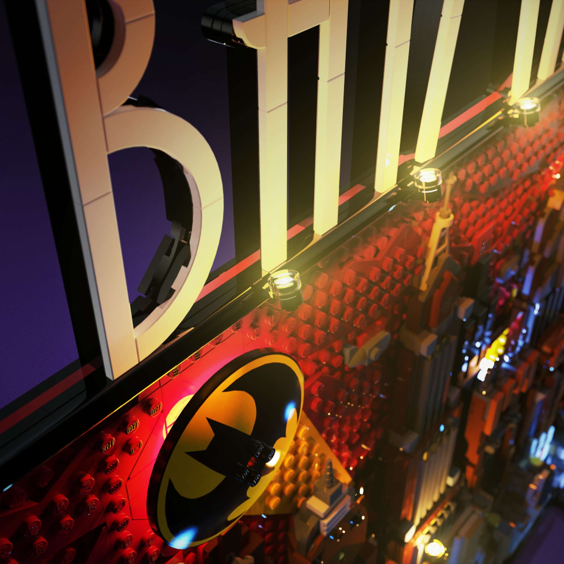 24 lights have been scattered around the "dark deco" city skyline and scenery, from the towering skyscrapers, to Wayne Manor, Ace Chemical Processing Plant and of course the iconic Bat-Signal.
