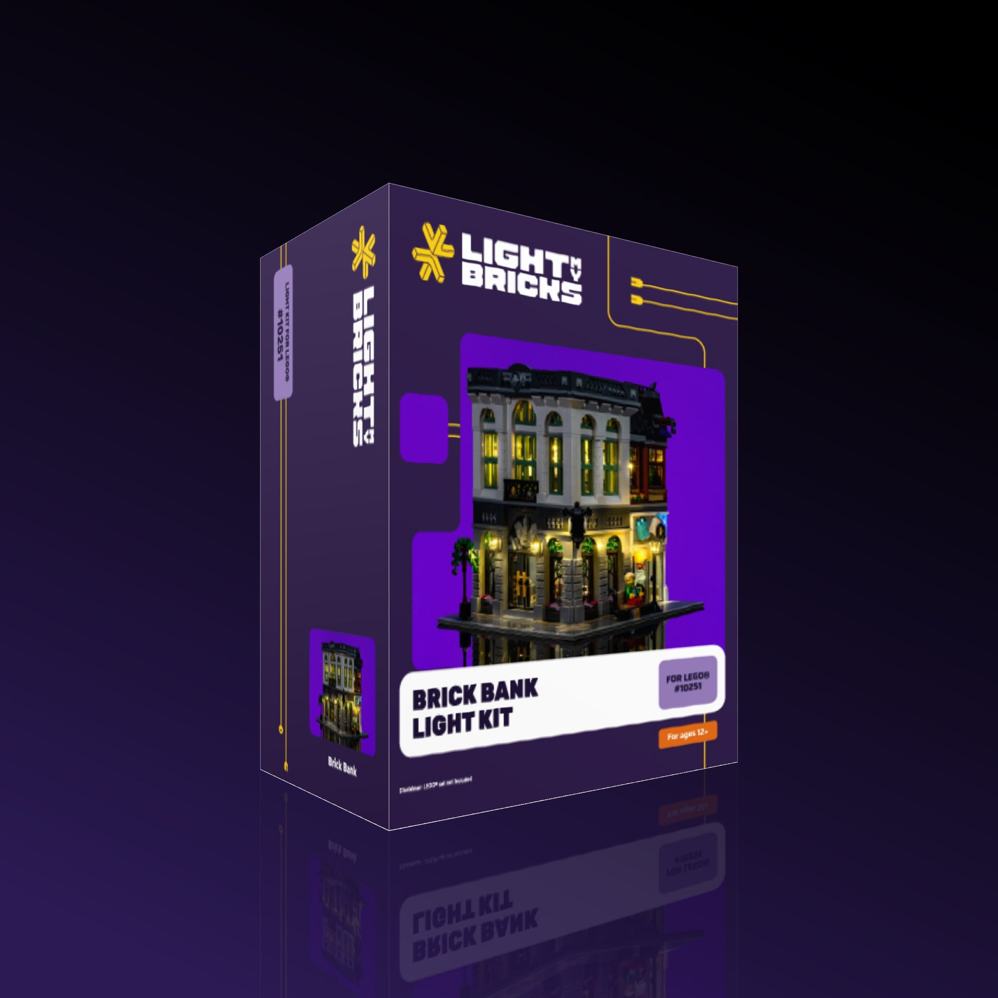 Add timeless elegance to your modular street with a custom Light My Bricks™ Light Kit for the LEGO® Creator Expert Brick Bank 10251. Warm white lamp posts and glowing lanterns illuminate the exterior, while cool interior lighting showcases every architectural detail inside. The chandelier in the grand foyer sparkles to life with micro string LEDs, while flickering lights in the fireplace and desk lamps add warmth and realism to the offices above. With flashing lights connecting the laundromat and the bank for storytelling flair, and Flux Touch Plates allowing for easy level removal, this kit transforms the Brick Bank into a radiant centrepiece of your LEGO® city.