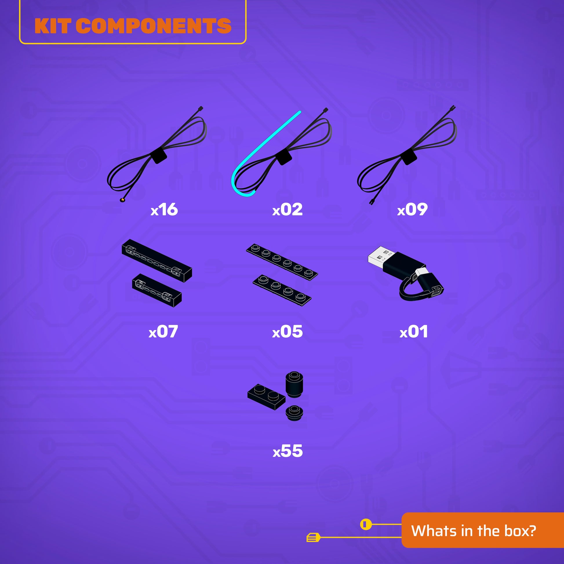 • All component casing and housing has been designed to connect seamlessly onto the LEGO stud system, with LEGO dimensional parts.