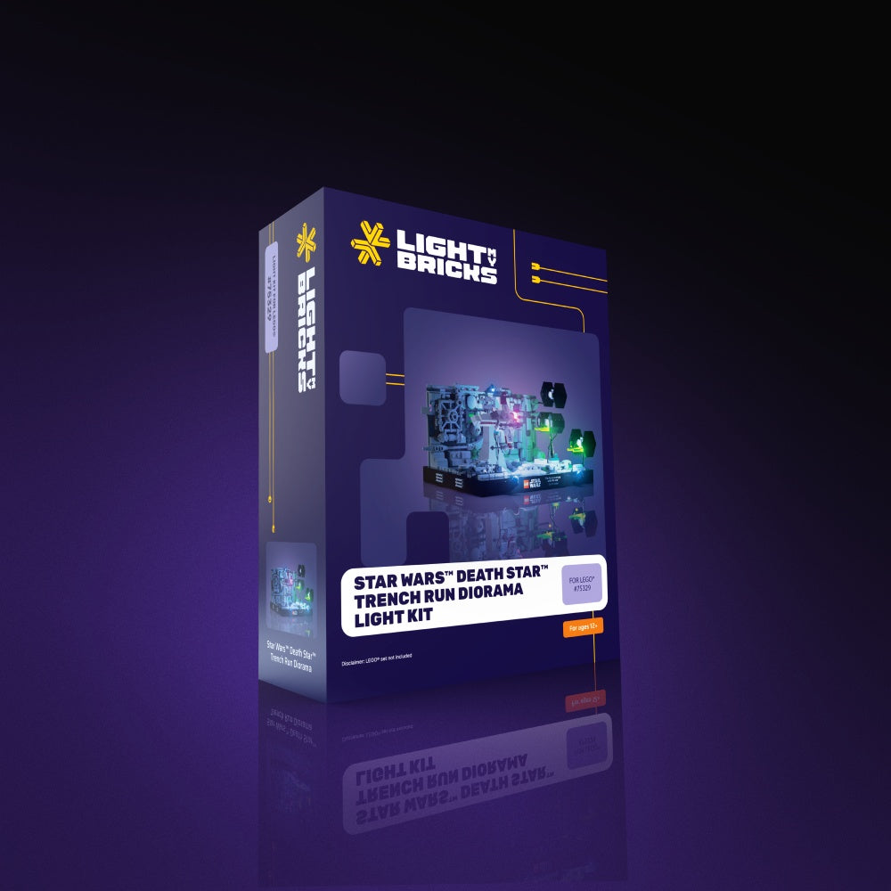 Channel Jedi-like focus and recreate a classic moment from the Star Wars saga with Light My Bricks™. This light kit features 8 individual lights which faithfully recreate this unforgettable and gripping moment from the films. In brick-form, the Death Star trench run is filled with authentic details. Lit up, it will impress all who cast their eyes upon it.
