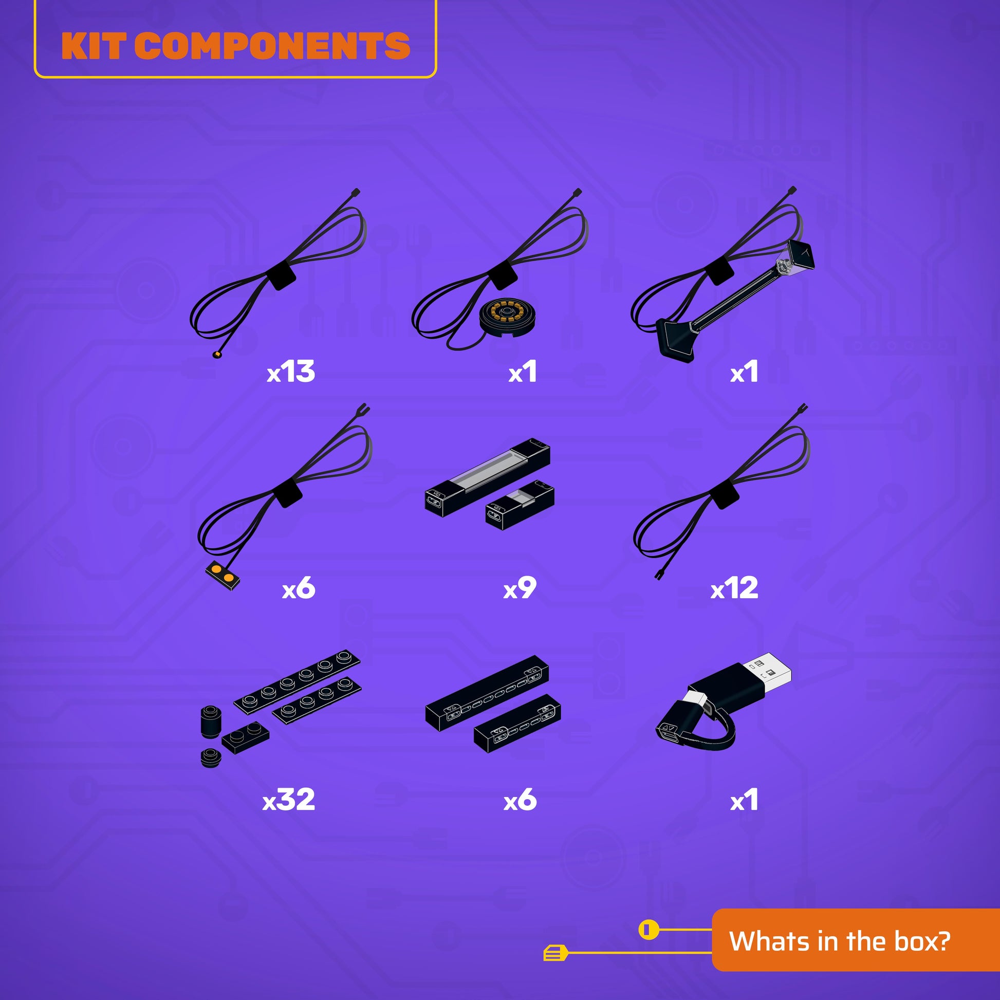 • All component casing and housing has been designed to connect seamlessly onto the LEGO stud system, with LEGO dimensional parts.