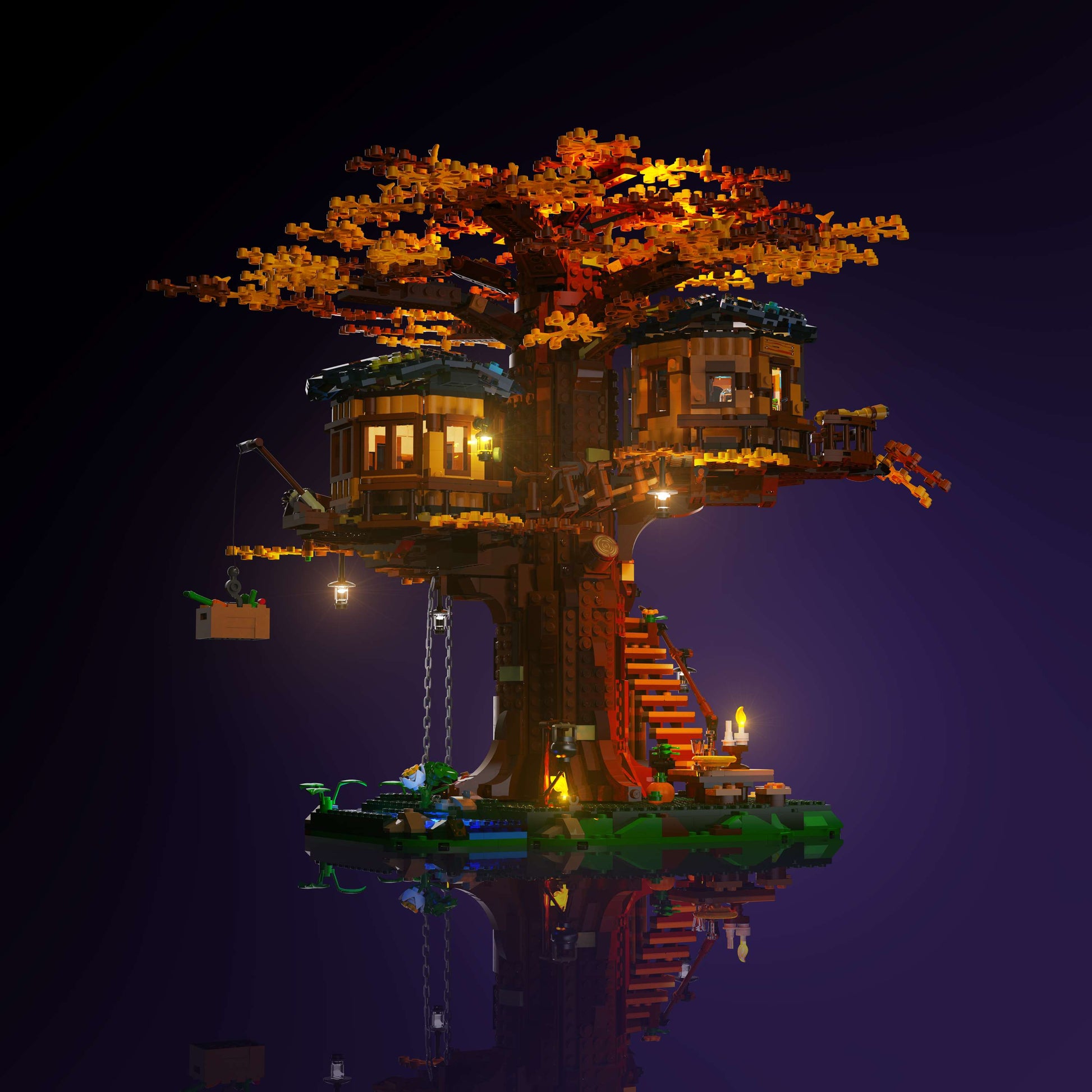 Designed to enhance and illuminate every detail of this intricate LEGO® Tree House set, you can create a tranquil outdoor river setting with warm blue lighting and cosy flickering lights in the campfire and candlelit table. Lanterns scattered across the treehouse cast a warm, enchanting glow through the branches and interior. Get creative with customisable leaf lighting to highlight either autumn yellows or bright spring greens. Blending artistry and functionality seamlessly, this Light My Bricks™ kit transforms your build into a stunning display and is perfect for collectors and enthusiasts alike.
