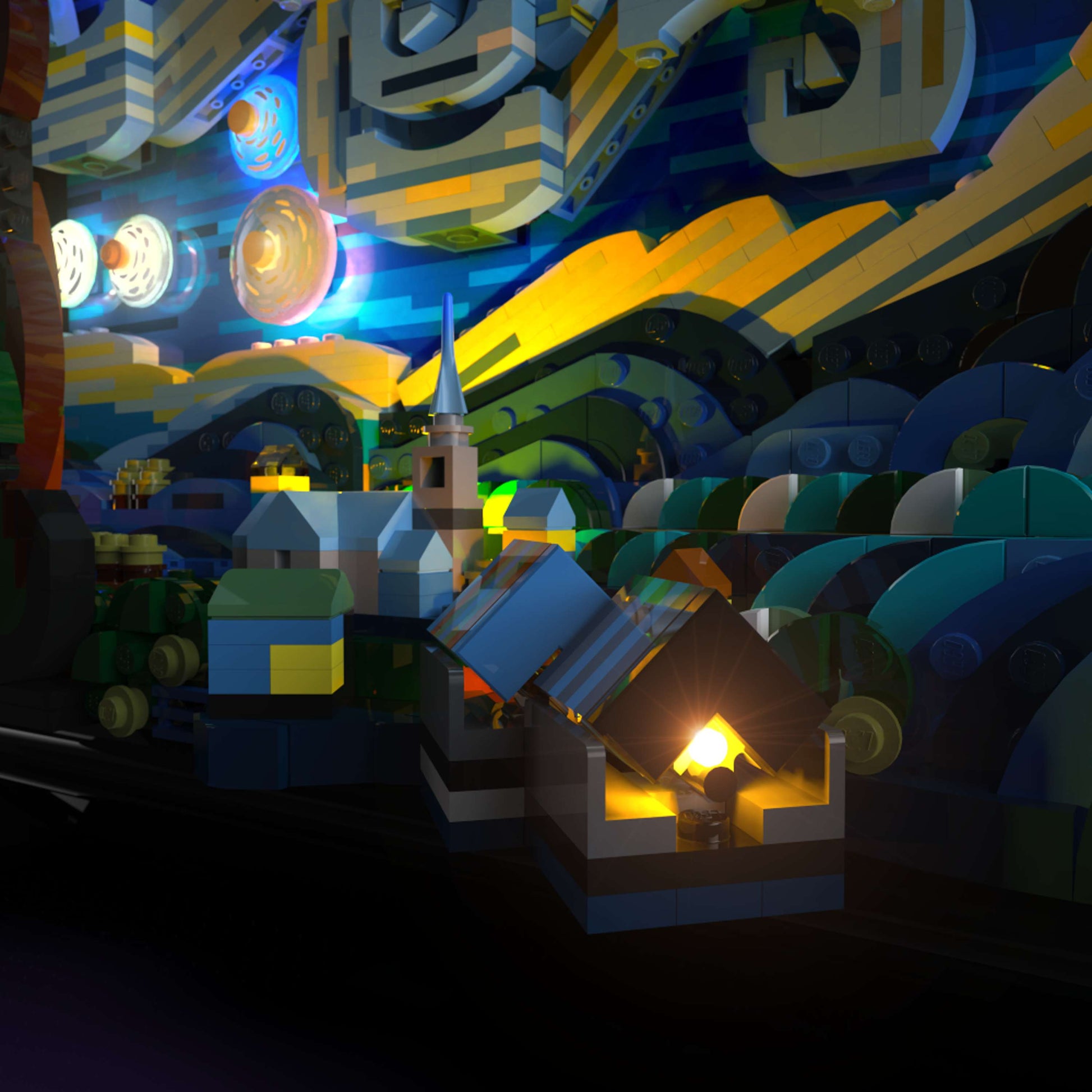 Capture the stunning details and iconic brushstrokes of Vincent Van Gogh's The Starry Night in brick form with Light My Bricks™. The beauty of Van Gogh's art lies in his expressive brushstrokes, composition and use of colour, so we've faithfully embraced the mood, expression and sentiments of The Starry Night in our lighting design.