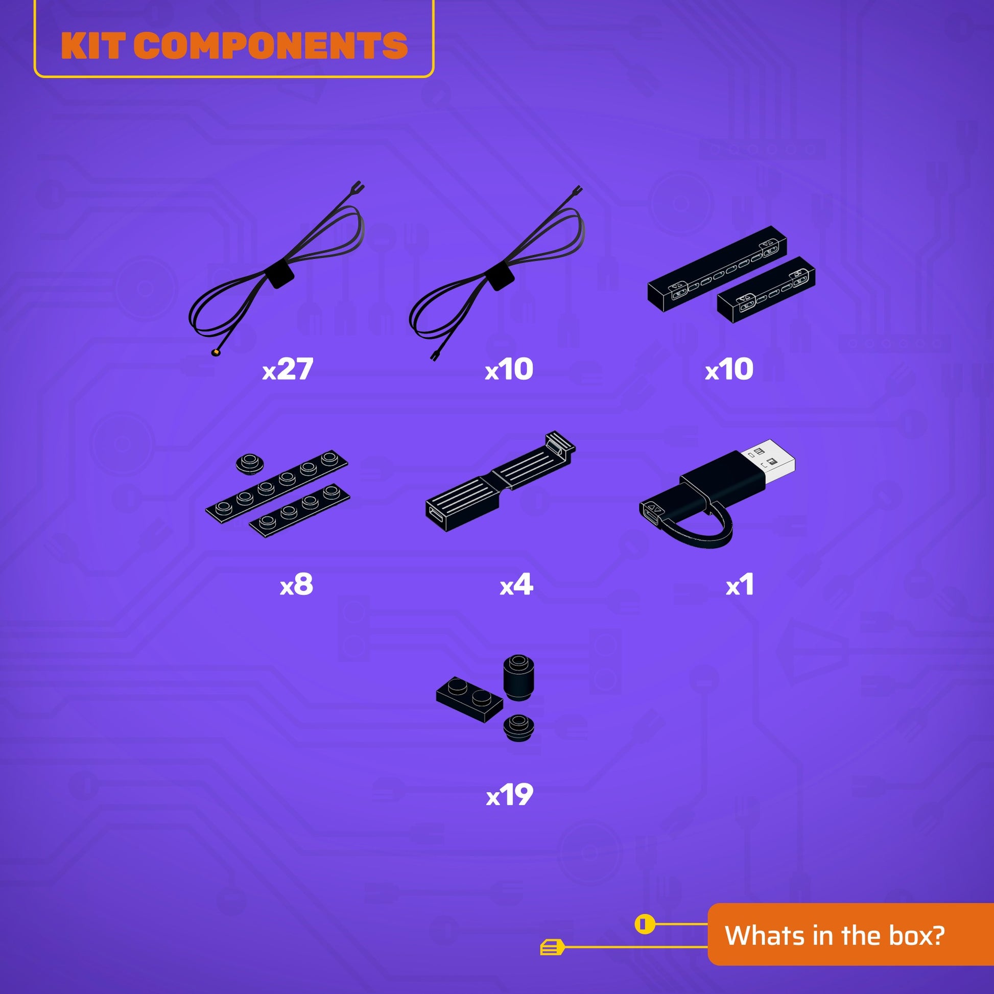 • All component casing and housing has been designed to connect seamlessly onto the LEGO stud system, with LEGO dimensional parts.