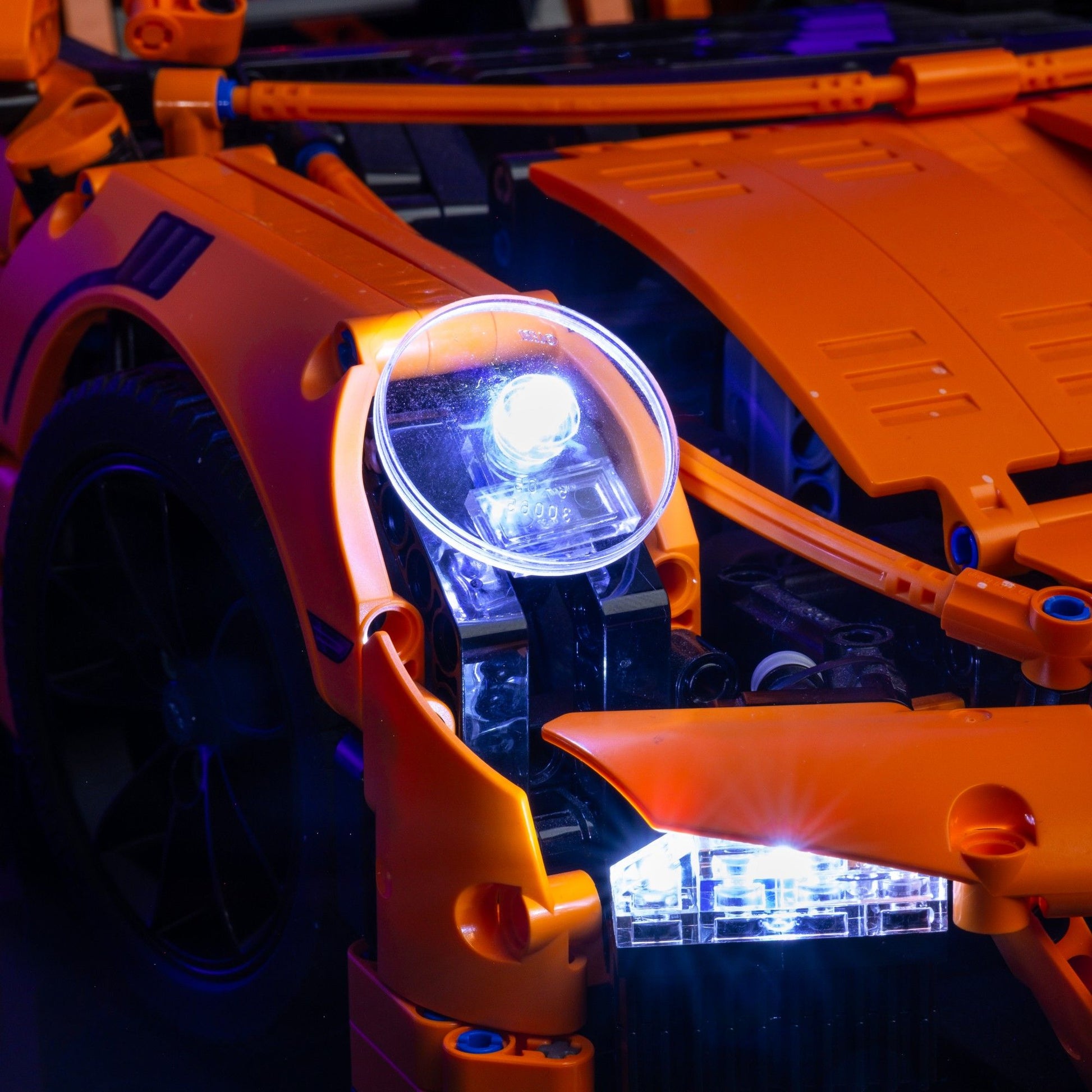 The pack includes two large warm and cool white lights to illuminate the main headlights, plus there’s four regular cool white lights perfect for featuring your vehicle's fog lights in all their glowing glory. Four red lights add a dramatic brake effect, plus there’s additional warm, cool white lights for highlighting the intricate details of the interior. Everything you need to connect, install, and start your light-up journey is included in our Vehicle Light Pack. Shift your LEGO® game up a gear with the perfect lighting for every vehicle.