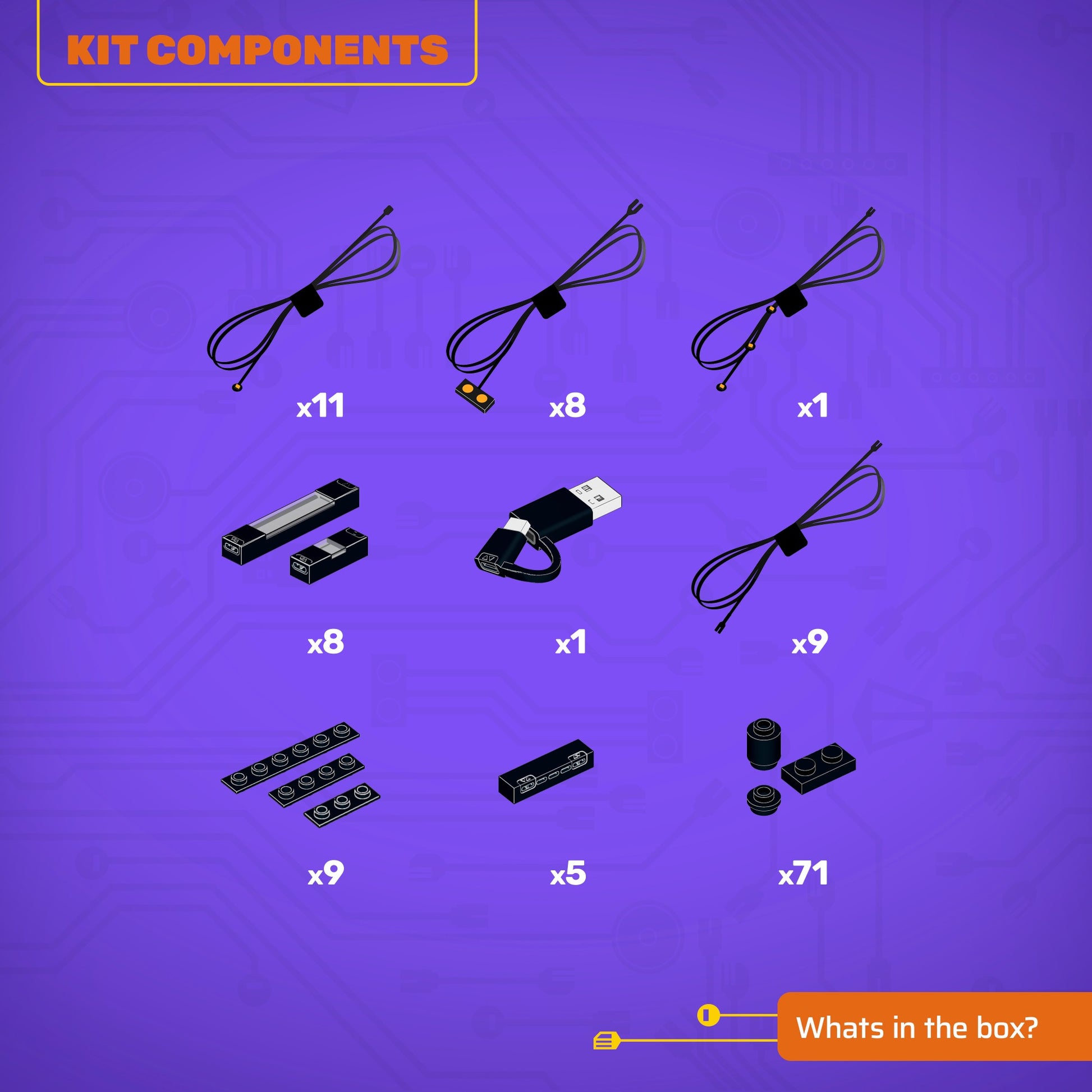 • All component casing and housing has been designed to connect seamlessly onto the LEGO stud system, with LEGO dimensional parts.