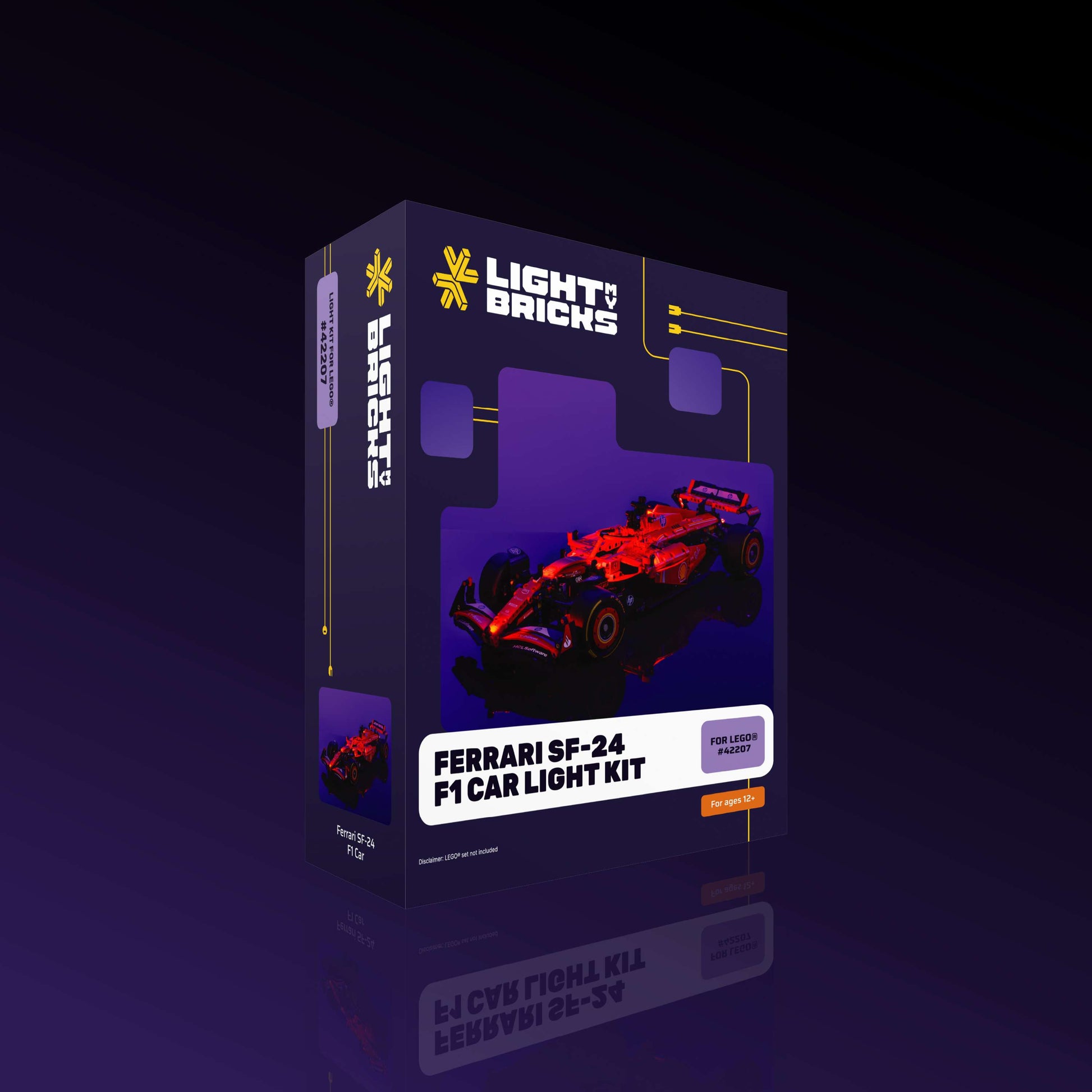 This is what peak F1 performance looks like - Light up the LEGO® Ferrari SF-24 F1 Car 42207 and take it to the next level with a Light My Bricks™ Lighting Kit. This Light Kit features 14 individual LEDs, including six Large Red Astro Lights highlighting the exquisite detail of the Formula One race car's chassis.