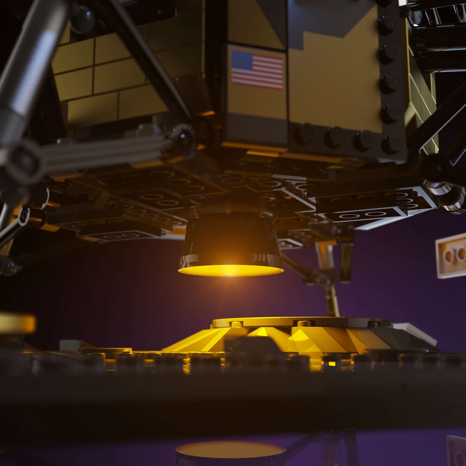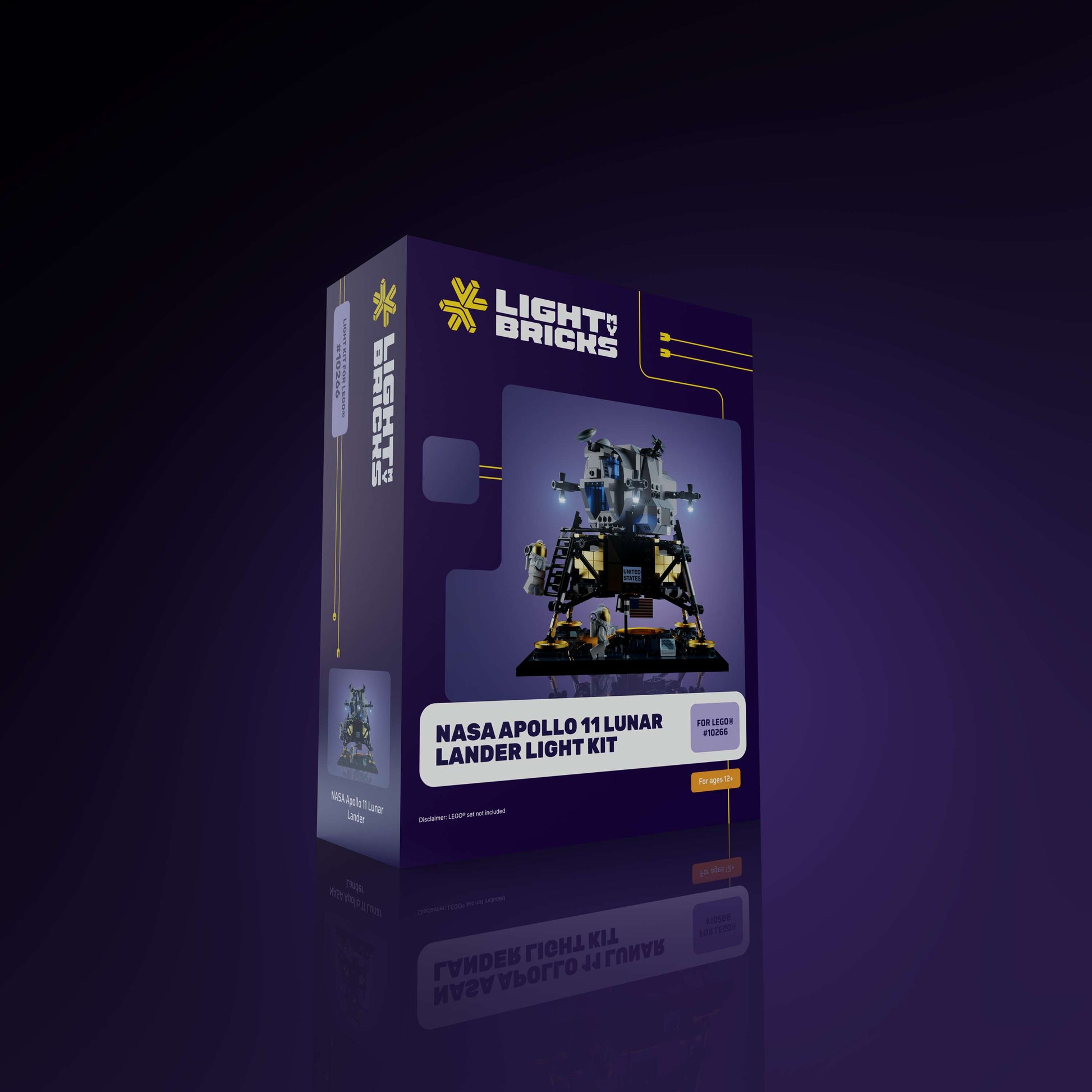 This custom kit transforms your LEGO® NASA Apollo 11 Lunar Lander into a glowing tribute to space exploration, capturing the epic thrill of man's first steps on the moon. Create your own piece of history and relive the moon landing with our easy-to-install Apollo 11 Lunar Lander Light My Bricks™ lighting kit.