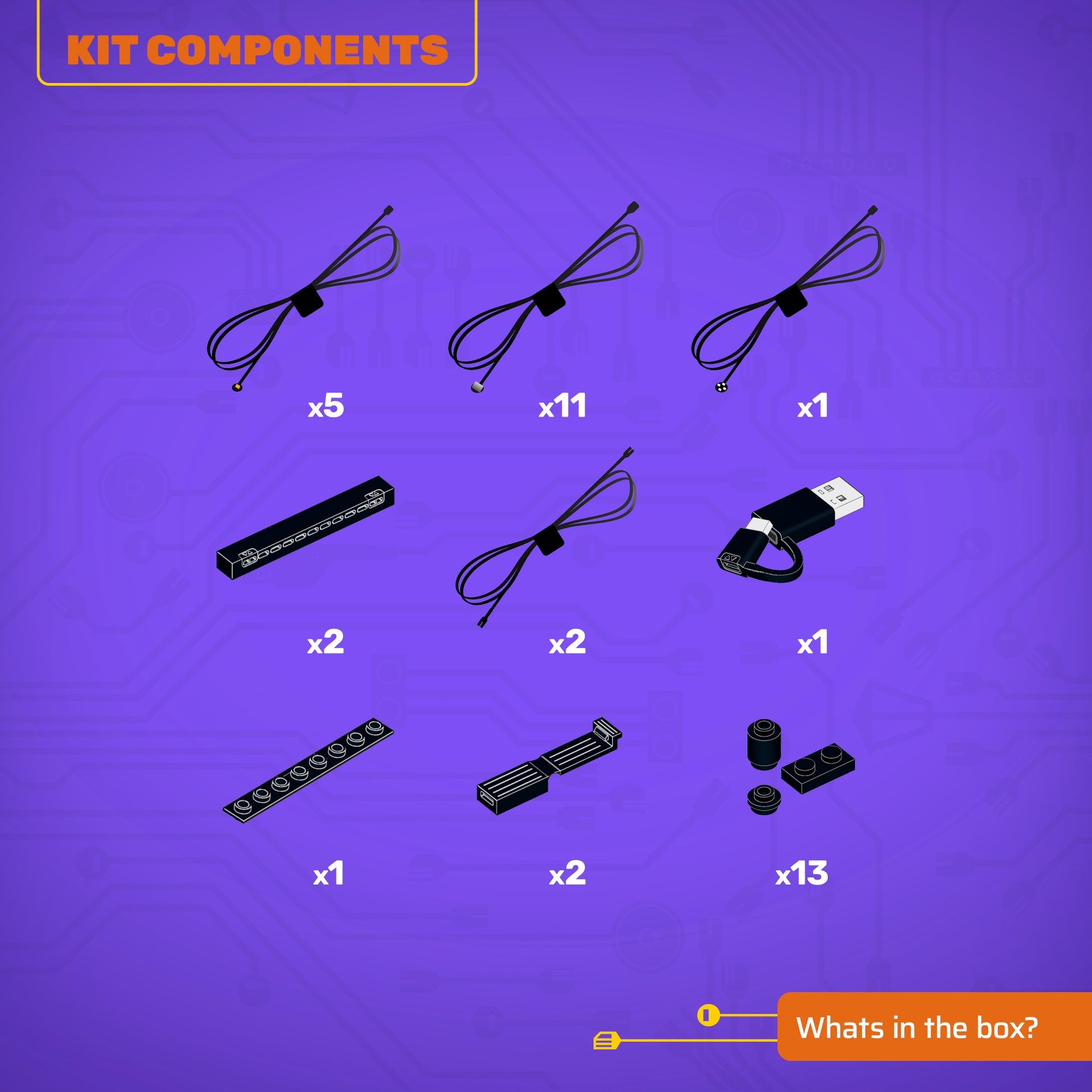• All component casing and housing has been designed to connect seamlessly onto the LEGO stud system, with LEGO dimensional parts.