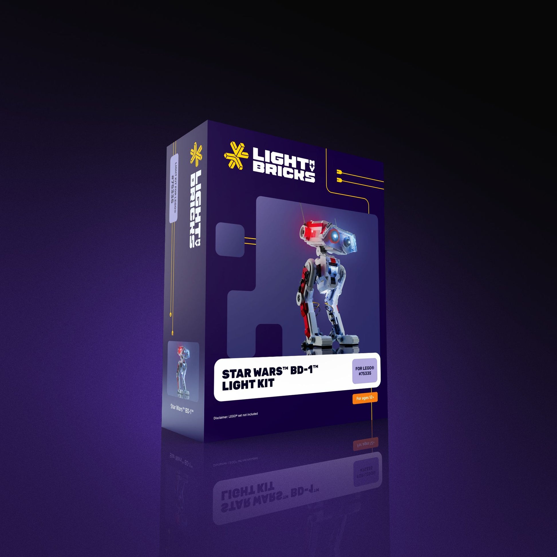 Packed with game-inspired features, you can take your LEGO® BD-1 to the next level with our advanced lighting kit! Bring your favourite droid to life with blue and white Astro Lights illuminating Star Wars BD-1's eyes. Add to this cool colour-changing lighting effects and a glowing green stim drawer. The rear computer panel shines with 9 vibrant lights, while cool white lighting adds a subtle glow to the chest, legs, and propulsion systems.